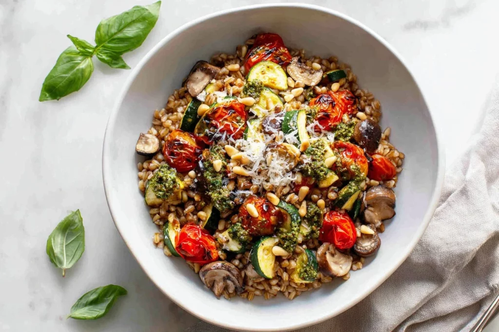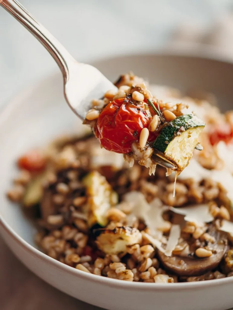 Feel free to adjust this recipe to suit your taste. You can swap zucchini for bell peppers or asparagus for a different vegetable profile. If you have other types of grains on hand, like quinoa or brown rice, these can be used instead of farro. If vegetarian parmesan isn’t available, consider using nutritional yeast to add a cheesy flavor. The beauty of this recipe lies in its flexibility, allowing you to make it your own while still enjoying the same comforting flavors.