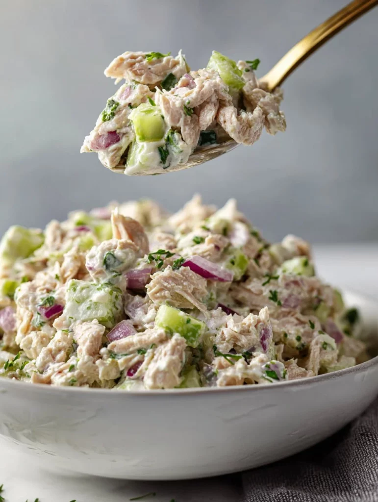 This Mediterranean Tuna Salad is ideal for families and anyone looking for a nutritious meal that doesn’t require much time in the kitchen. It’s packed with protein from the tuna and healthy fats from Greek yogurt, making it a balanced option for lunches or light dinners. Plus, it’s customizable and can be served on its own, in a sandwich, or over a bed of greens. It’s a reliable recipe that combines fresh flavors and textures, ensuring everyone at the table will enjoy it!